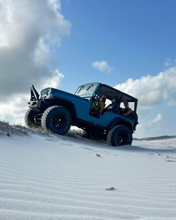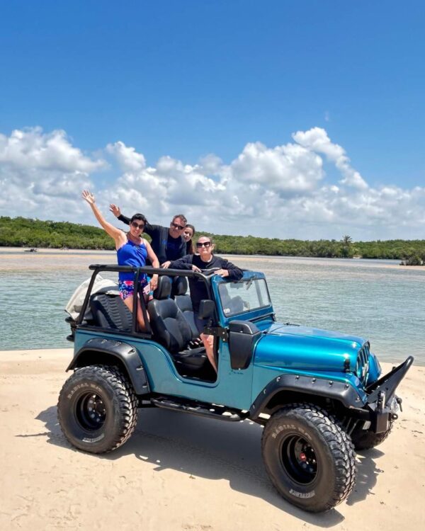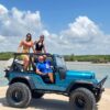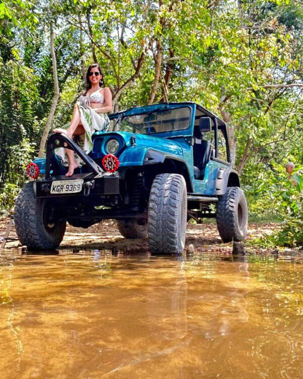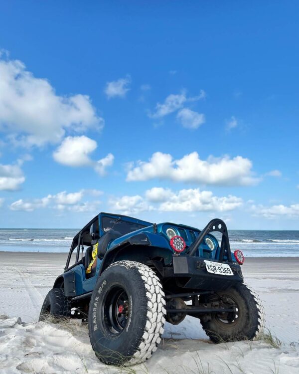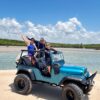 Aventura off-road em veículos abertos por trilhas e praias desertas.