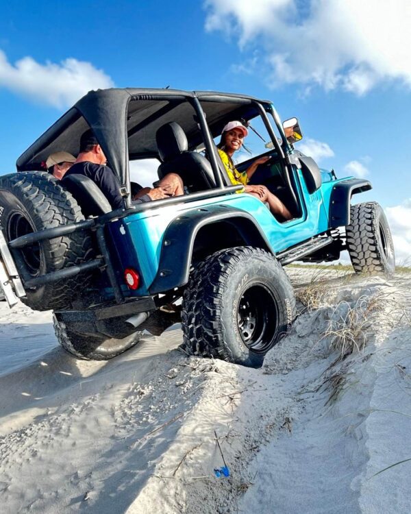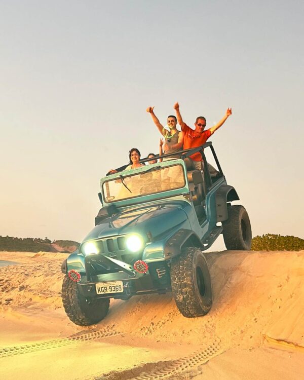 • O transporte é realizado 100% de 4×4 aberta, com saída dos hotéis localizados nos bairros Cabo Branco, Tambaú, Manaíra, Jardim Oceania e Bessa,